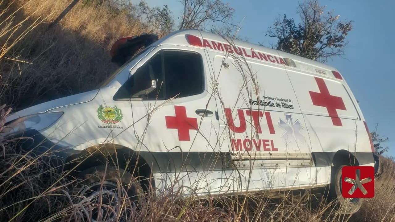 Ambulância que vinha para Patos de Minas perde o controle e se envolve em acidente na MG 410