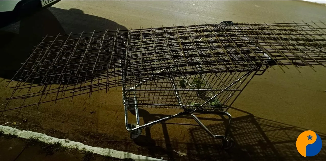 Questionado sobre a origem das seis malhas de armação de ferro para concreto, o homem foi contraditório. Primeiro, ele afirmou tê-las encontrado próximo ao mercado e, logo após, disse tê-las recolhido em uma caçamba de entulhos em frente a uma loja de móveis.