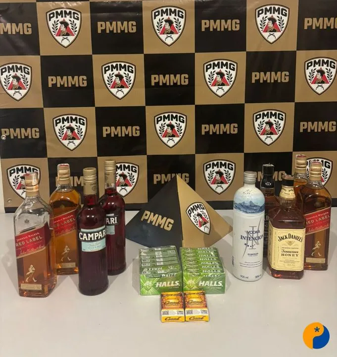 Do interior do estabelecimento, foram levadas diversas garrafas de bebidas alcoólicas, entre whiskies e vodkas, além de pacotes de cigarros de palha.