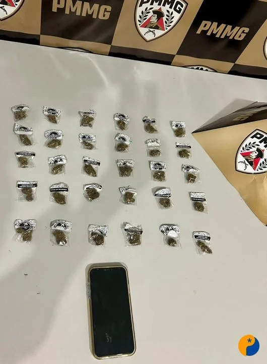 Dentro dela, os militares localizaram diversos invólucros da droga já fracionados, embalados e etiquetados para comercialização. As embalagens chamaram a atenção por conterem inscrições como “Delivery” e “Se estiver violado não receba”, indicando possível esquema de venda organizado. Um aparelho celular também foi apreendido.